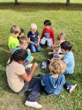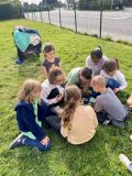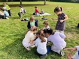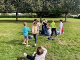 Après la collecte de cailloux et de brindilles les enfants ont fabriqué deux horloges que nous avons utilisé pour l apprentissage de l’heure .